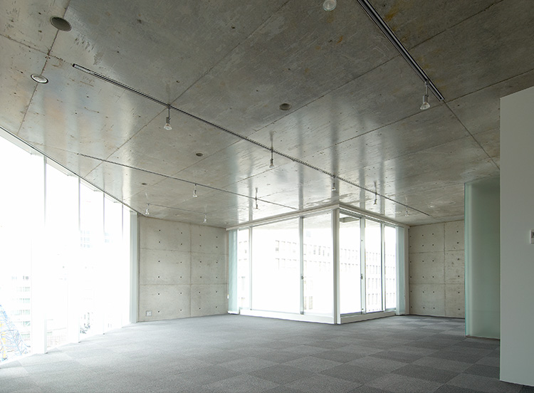 | コンセプト | 大阪のビジネス街の中心に位置するRC打放しのシンプルなオフィスビルです。床は全面OAフロアを採用。1フロア1室の小さいながらも様々なニーズに対応可能なマルチユースな空間です。 |
